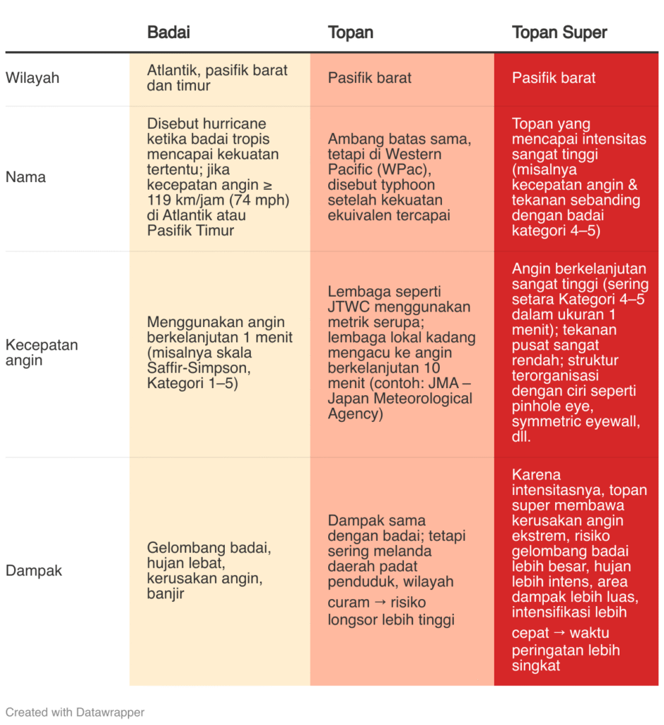 Karena asal topan memodifikasi tekanan dan pola atmosfer regional, sistem angin dan massa udara bisa ‘tertarik’ ke wilayah Indonesia bagian timur, meningkatkan potensi badai lokal atau hujan ekstrem.